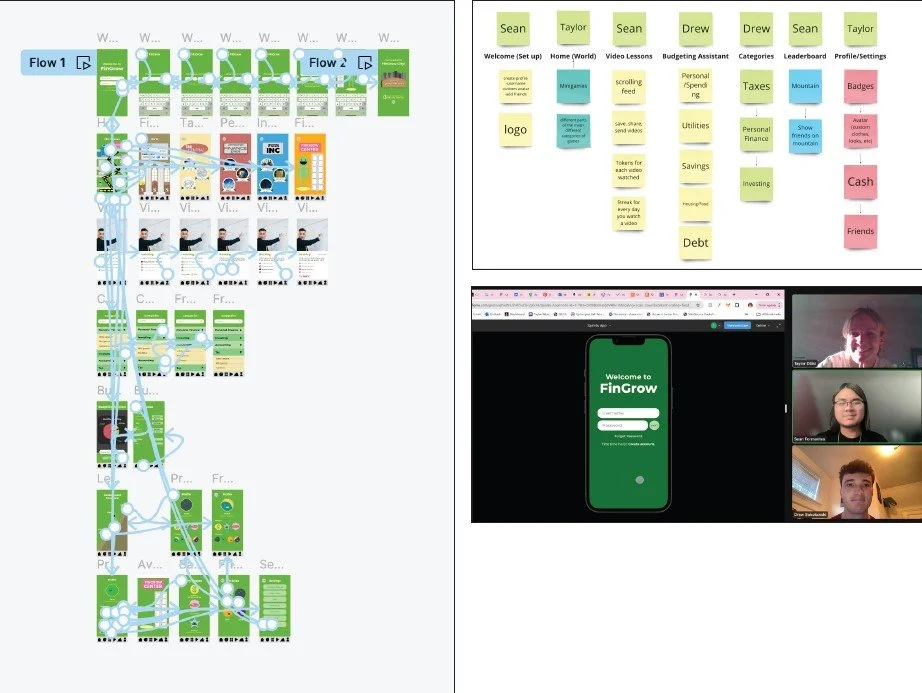 In order to help teenagers (13 - 19) better understand financial literacy & the importance of saving, three Interactive Media and Communications Master’s students at Quinnipiac University, Taylor DiLisi, Sean Formantes, and Drew Sokolowski, were tasked with the assignment of running a sprint to create a prototype that would help with this. The Design Sprint is a a five-day process for answering critical business questions through design, prototyping, and testing ideas with customers (Google Ventures). By performing a modified sprint over five weeks, the team was able to create the concept of FinGrow, a multiplayer virtual world where users can complete games and watch videos with the incentive of GrowthCash, FinGrow’s currency.